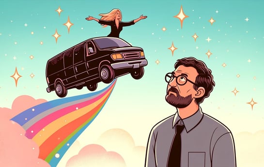 The light turned green. I saw the van bearing the duo of transcendental stickers begin to waft away, and it came to me all at once: this is a woman who knew what she was, how she was, but most importantly, when she was. It is inconceivable that such an individual would be allowed to persist in such a manner fifty years ago. Imagine it! 1974 - a family of Smiths or Youngs or Steins are coming home from the after-school pickup and they see “Hella Kids Up In This Bitch”. Would they take it literally, worrying for the rest of the night that a female dog had borne too many pups?